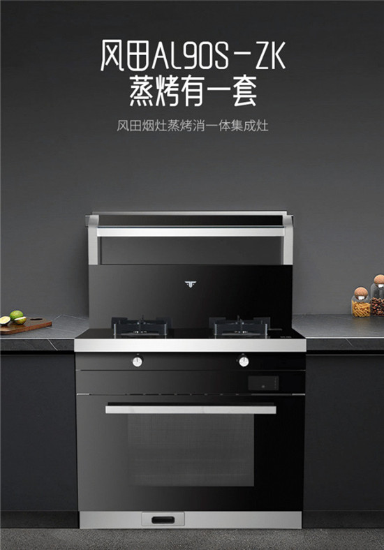 风田AL90S-ZK集成灶在功能上不仅集成了基础的烟机、灶具、蒸箱和烤箱,更令人惊叹的是它的体积——风田AL90S-ZK的宽度仅有900mm,深度也只有600mm,与我们厨房中的橱柜是齐平的,相较于传统的烟机+灶具+蒸箱+烤箱的组合,所占用的体积非常小,可以让渡出更多的厨房空间用于收纳和烹饪活动。