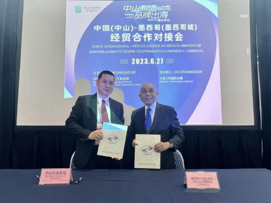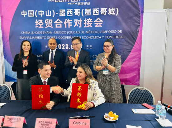 会上,中山市商务局联合市委统战部组成的中山经贸侨务交流团向到会墨西哥嘉宾及客商详细推介了中山市产业营商环境,细致介绍了中山产业、优势商品、品牌企业的情况。同时,在中国国际贸易促进委员会驻墨西哥首席代表史晓初先生与米奥兰特国际会展首席运营官Binu Pillai先生的见证下,中山市商务局与墨西哥中国商业科技商会、墨西哥外贸、投资技术企业理事会等商协会组织签订了多份战略合作协议,双方将进一步巩固合作成果,推动双方企业在贸易合作关系向纵深发展,为中山市企业搭建直通墨西哥市场的有效渠道。