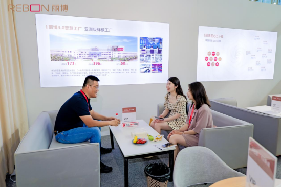继绿色环保的“丽博芦苇板”之后,2023年丽博家居又推出了ENF级亲肤科技板材“丽博丽肤板”,该板材也透过「理想家」在本次展会实力亮相,凭借“耐划伤、耐变形、耐腐蚀、耐高温、耐指污”五大性能以及瑞好封边技术,深受观展嘉宾的喜爱。