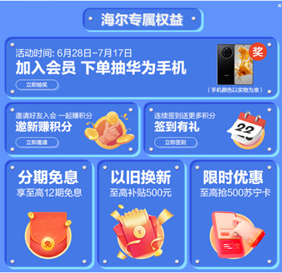 717燃购节期间,苏宁易购与海尔联名推出了新款Super会员卡,年费为149元,可得一张无门槛的150元海尔无敌券,相当于买一单即回本。
