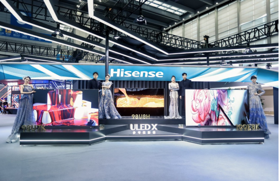 展会现场,海信电视98英寸U8H、98英寸U7K、100英寸E8K组成的ULED X参考级影像新品超大屏“天团”,凭借震撼、通透细腻的画质表现,成为最吸睛的区域之一。