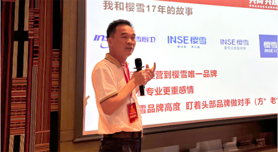 李总自我介绍:他是樱雪17年的全天候战略合作伙伴。从多品牌经营到樱雪唯一品牌运营,定位樱雪品牌高度,只盯着头部品牌做对手。