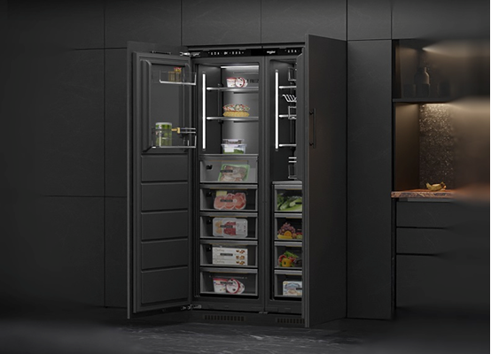高颜值、个性化产品随着消费群体代际变化日益受捧。惠而浦顺势而为,不论是在冰箱、洗碗机、微蒸烤嵌入式形态上的丰富探索,还是在色彩和细节设计处的精雕细琢,均为追求家电美学与生活空间的深度融合。W9嵌入式冰箱就凭借精湛工艺美学与人性化设计斩获“2022CMF设计奖”,全嵌入式设计赋予厨居美学无限可能,云砂灰深色内胆沉稳而深邃,三维立体柔和光源与金属内饰相映呈现细密光泽感,不动声色诠释高雅气度。