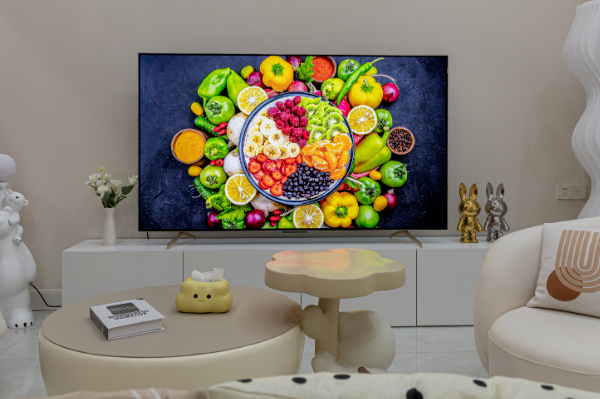 说了这么多,TCL C11G Pro电视到底怎么样?例如下图中的水果拼盘,在黑色背景的映衬下,我们可以清晰地看到香蕉的纹理、猕猴桃的细小颗粒、桑葚的红色颗粒等等。高画质得益于C11G Pro沿用了行业旗舰X11G的硬核技术—六晶方芯和广角均光透镜。其中自研的六晶方芯比行业常规芯片多了4个发光点,发光点的提升带来了27.5%的亮度提升和30.2%的能效提升,而行业首创均光透镜在六晶方芯上的基础上经过了优化升级,与普通透镜相比发光角度从130°提升至160°,提升了透光的均匀性,让画质得到了更好的呈现。