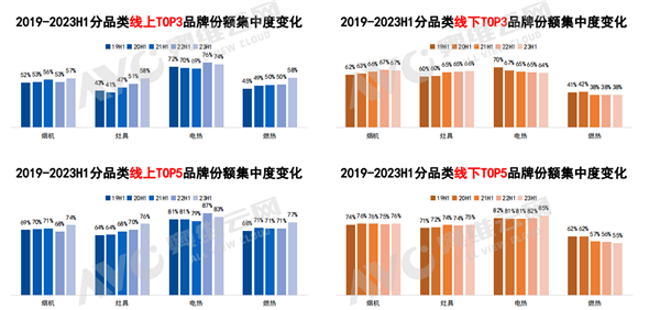 就整体而言,存量市场分秒必争,淘汰赛开启,头部品牌集中度提升也有效地拉动产业升级。其中,电热线上top5品牌份额占比达到了83%,线下top5品牌份额占比达到了85%;燃热线上top5品牌份额占比达到了77%,线下top5品牌份额占比达到了55%。