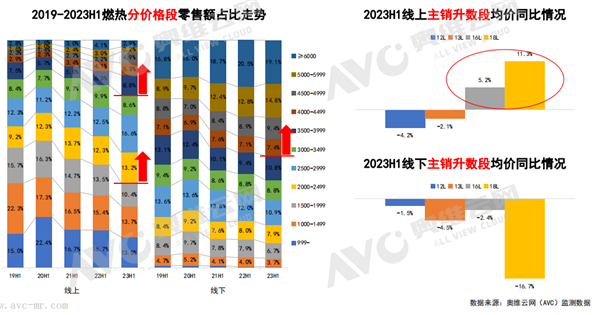 价格段方面,线上市场3000元以上价格段呈现增长趋势;线下市场4000元以上价格增长显著,其中,4500元以上价格段零售额占比达到20.7%。