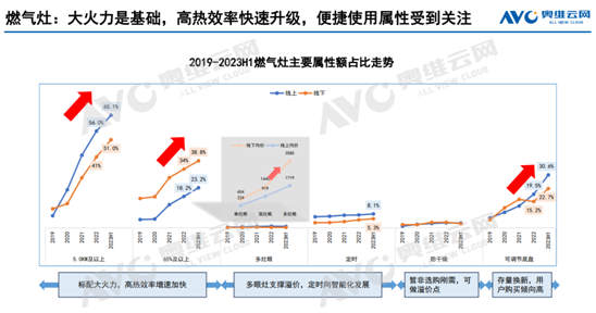 除了集成烹饪中心外,产品端内卷已经严重,我们以油烟机和燃气灶为例,以往高端才配置的吸力、风压、变频等参数和技术已经成为中低端油烟机的标配,而大火力则成为了燃气灶的基础,大家开始追求高热效率。