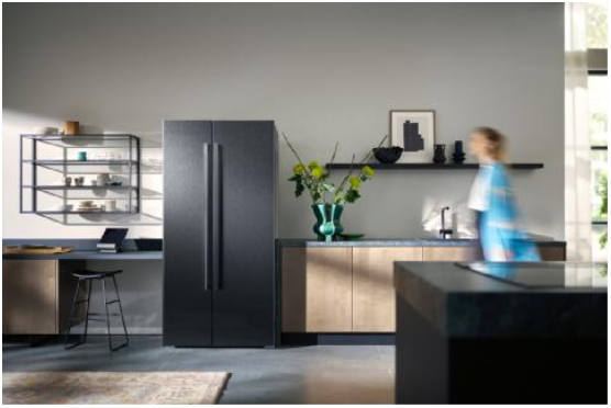 对于现代家庭而言,冰箱正在成为厨房里烹饪中心之外的食材存储中心,并逐渐占据厨房装修中的C位,因此,除了保鲜需求之外,冰箱的颜值也变得更加重要。西门子曜钢黑精控恒鲜对开门冰箱的出现,妥妥满足了颜值控们的期待,它的外观设计更接近一台高端典雅的艺术品,以硬朗风范绽放出独特的曜钢黑光彩,就算放在客厅也毫不违和,精湛设计拓宽了家庭生活场景的更多可能。外观精选不锈钢防指纹面板,凭借拉丝纹理质感,塑造硬朗大气的美学氛围,贯通上下的高端拉手设计,凸显德系精工一直坚持的流畅设计风格。内饰也同样充满动感:冷藏区采用整幅背灯设计,营造出剧院式照明空间,冷冻区选用金属背板,搭配银色装饰,衬出冷峻开阔的科技感。