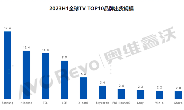 8月1日,奥维睿沃(AVC Revo)发布《全球TV品牌出货月度数据报告》显示,2023年上半年,全球电视出货共8918.9万台,同比下降1.7%,中国头部品牌出货规模持续扩大。海信(含东芝)电视出货延续高速增长态势,上半年全球出货1243.4万台,同比增长22.3%,继续以全球最高增速领跑行业,站稳世界第二。海信系电视全球出货量占有率提升至13.94%,创下历史新高。