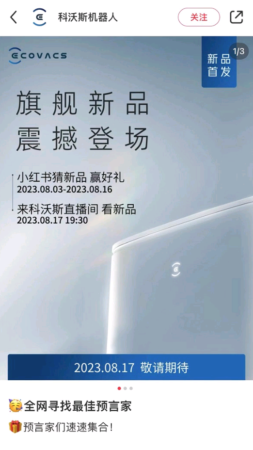 尽管目前还没有更多关于科沃斯新品信息,但电商预订页面都上了,相信很快官方就会开始全面预热,释放新品的参数信息。我们也会持续关注。