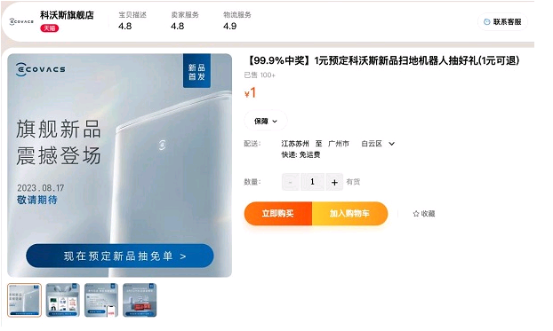 最近如果有准备入手扫拖机器人的朋友,不妨再观望下,因为科沃斯有新品要来了。虽然官方社交平台还没发布新品的信息,但是某宝已经上线了一个1元预定页面,这妥妥就是新品来了的节奏。