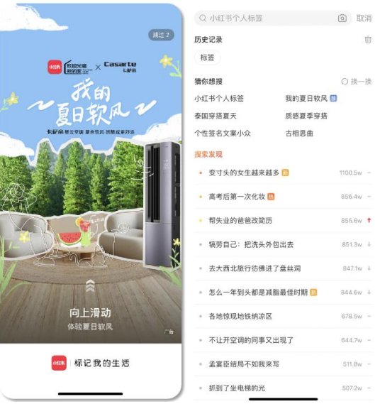 在小红书,关于空调的话题浏览量高达6.9亿次。作为当下年轻人生活方式的引领者,小红书一直在和年轻人们一起探索更舒适质感的新场景。