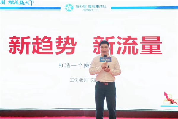 纵横千里创始人刘勇老师与蓝炬星营销副总裁邹邦东先生分别对于市场趋势与新媒体运营赋能、蓝炬星营销规划作出细致讲解。