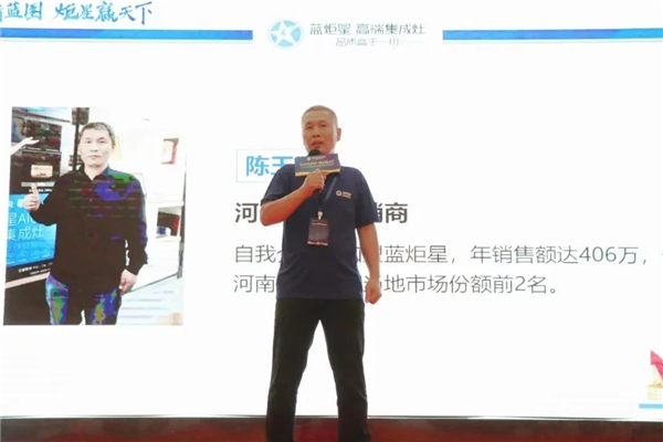 随后,他对蓝炬星集成灶品牌实力、产品特色、市场运营以及科技创新实力等方面的强大优势都作出了详细介绍。