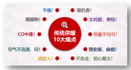 据业内专家透露:近年来,随着“厄尔尼诺现象”与“拉尼娜现象”频发,很多地区出现了“夏天极热,冬天极寒”的情况。我国黄河以南大面积区域,冬天极度缺乏供暖。目前,市面上主流的:烤火炉、小太阳、暖风机、油汀、空调、空气能等取暖设备,存在诸多痛点: