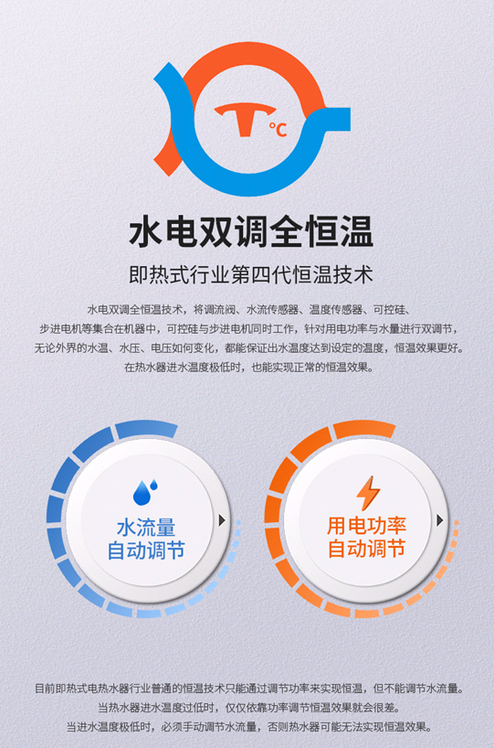 2021年后,随着即热式行业的又一次风口来临,各个厂家都加快了产品升级的速度,水电双调全恒温因为可以真正的改善沐浴体验,成为了各厂家高端新机型的首选。