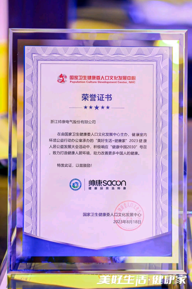 2023年8月18日,由国家卫生健康委人口文化发展中心主办、中国品牌建设室内空气净化品牌集群、北京中科物联网标识技术研究院、广东省室内环境卫生行业协会、广东省南山医药创新研究院、高端品牌实验室、奥维云网协办的美好生活·健康家——2023健康人居公益发展大会于北京盛大召开,帅康电气受邀出席本次大会。