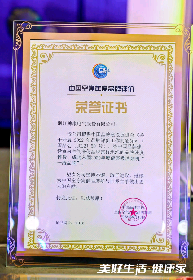 此次荣获健康厨房器具2022年度一线品牌、2022年度健康吸油烟机、健康集成灶、健康燃气灶“一线品牌”,是对帅康健康厨房的极大肯定。未来,帅康将继续秉持初心与愿景,不断为行业带来变革新动力,推进厨电行业健康蓬勃发展。