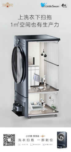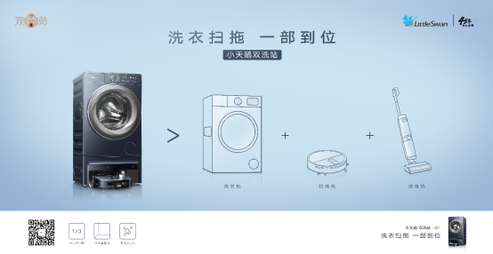 2023年8月,国民家电品牌小天鹅将衣物洗护和地面扫拖等清洁功能进行创新融合,推出家电新品类双洗站产品,实现洗衣扫拖一部到位,为用户与行业带来了全屋清洁新体验。