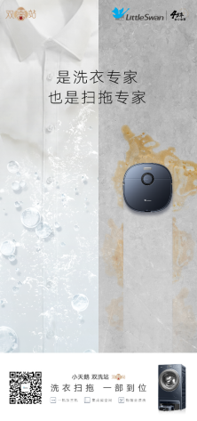 区别于靠数量堆砌功能完成家庭清洁任务,小天鹅双洗站则通过创新技术,集成传统衣物洗护、地面扫拖产品形态。全新结构通过上洗下拖的形式,并搭载多项黑科技技术全面完成衣物净洗,以及地面的洗、拖等多项清洁流程。集洗衣、扫拖多功能于一身,有留足更多时间于新婚夫妻享受生活,更多空间于新房初装。
