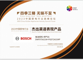 博世吸油烟机DWF975A21W及嵌入式燃气灶PGD72A31MP荣获“2023中国厨电行业杰出渠道表现产品”