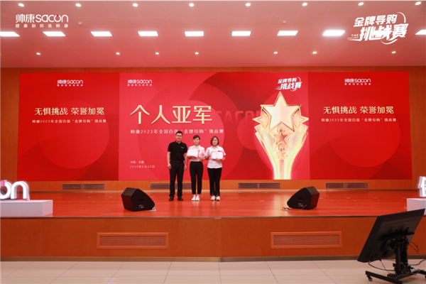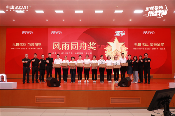 帅康将士多才俊,英雄豪杰聚锦辉。在颁奖环节,帅康为本次挑战赛中的金牌导购颁出了荣誉奖项,向榜样致敬,为金牌导购加冕。每一位登上领奖台的获奖者,都是是市场上的英雄,是业内的榜样,是帅康人的标杆。展望未来,帅康人必将高扬风帆、劈浪前行,将健康厨房推广到更多家庭。