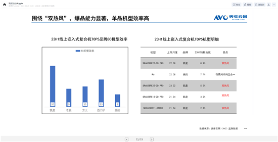 来自奥维云网(AVC)的监测数据显示,2023年上半年品需厨电合计零售额为197亿元,同比增长5.5%。其中,嵌入式复合机零售额同比增长了9.4%,增幅远远高于嵌入式整体零售规模。