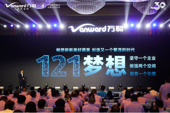 假如我们把“121”梦想战略看成是一艘驶往远方的船,那么“三大战略主轴”就是提供动力的发动机,而维持两者运行的底座就是组织变革,三者相辅相成,构建了万和未来的大格局。