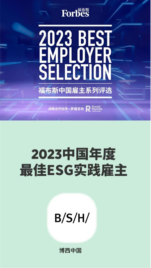 此次福布斯“2023中国年度最佳ESG实践雇主”的殊荣是对博西中国在ESG、创新、雇主品牌等不同领域突出实践成果的综合肯定,同样也激励着整个博西家电继续深化可持续发展,并更加有效地激发员工的认同感和使命感。