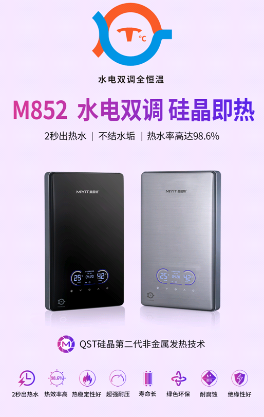 美因特M852采用了QST硅晶加热技术+水电双调全恒温技术的高端组合,产品力优势明显。差异化的产品策略,一直是美因特坚持的经营原则。