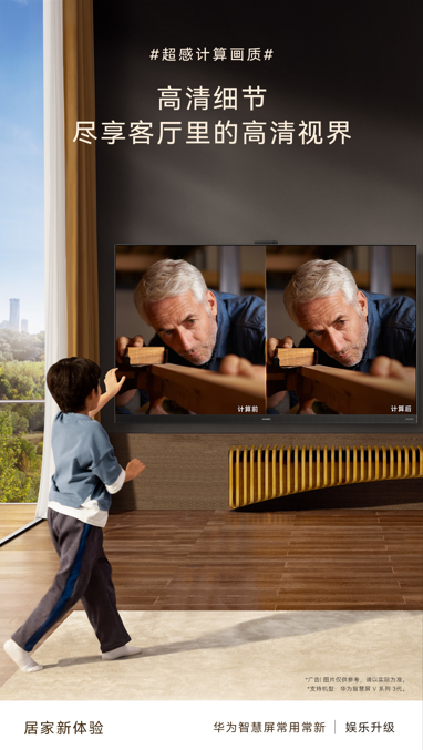 在音、画质方面,华为智慧屏凭借大量的音视频专利技术、先进的鸿鹄画质技术和非凡的音响系统,造就了出色的音画能力。在此次版本升级中,华为智慧屏V系列3代再度升级了超感计算画质特性,让用户的观影追剧体验得以进一步提升。例如,很多用户想在闲暇之余重温经典老片,但由于老片大多受年头太久、拍摄条件差等因素限制,从而导致画面模糊,无法满足用户观影的画质要求。此次升级后,用户可一键优化经典大片画质,进一步提升画面的清晰度,将整体画面更鲜活地呈现在用户面前,进一步增值了用户在观影时的体验感。