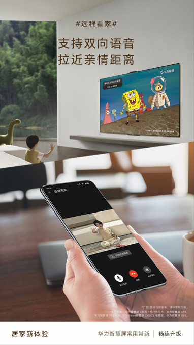 作为家中的C位,电视是联结每个家庭成员的核心枢纽,全新升级的华为智慧屏更是将这一联结突破了空间的限制,并为不擅长用机的老年用户带来了更加充满温度的体验。随着智能电视功能越来越丰富,操作也愈发复杂繁琐,很多老人反馈不会用、学不会,遇到操作上的问题也只能通过打电话来寻求远程指导。为更好地解决老人的用机问题,华为智慧屏新增了远程协助功能,父母通过畅连通话与子女连线,子女即可远程操控、远程设置,解决父母的问题。当你工作繁忙又放心不下家中的小孩或老人时,也可以使用新增的远程看家功能随时查看家中情况,双向语音通话还能让处在异地的双方,随时随地开启“云陪伴”。两大功能的升级,拉近了家人的距离,降低银龄族“孤独感”,让陪伴变得更简单。
