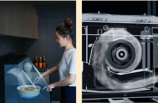 油烟是拦住你通往梦想厨房的第一道门槛,从烹饪的第一秒开始,培恩E5集成灶的变频拢烟系统已经开始工作,第一时间,确保你的厨房极速排烟,防止油烟扩散。