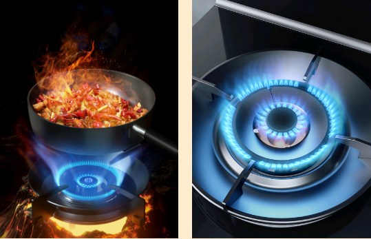 培恩E5变频集成灶专利复合靶向燃烧器,实现双灶5.0Kw猛火蓝焰,可根据烹饪环境,调节火力大小。ARC扰流片使火焰紧贴锅底稳定燃烧,防止热量溢散,节能更省气。