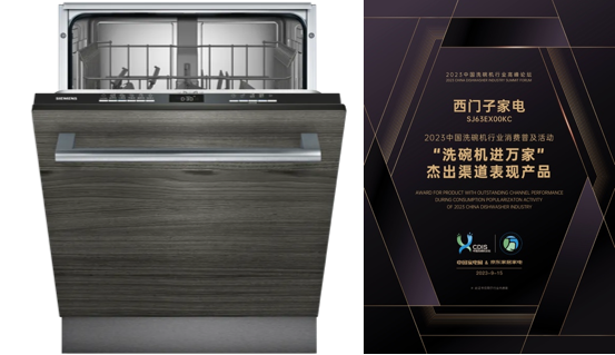 西门子洗碗机SJ63EX00KC荣获“2023中国洗碗机行业消费普及活动‘洗碗机进万家’杰出渠道表现产品”