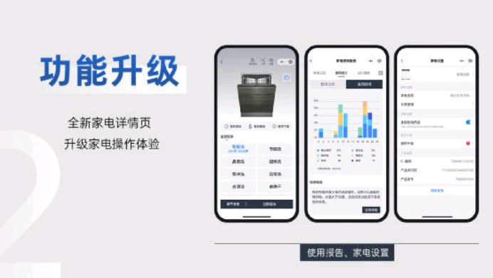 在功能拓展方面,3.0版本小程序推出全新家电详情页,导航栏、拓展功能区以及核心功能区等一系列独特分区清晰、直观呈现。升级后,小程序在导航栏中特别引入了使用报告和家电设置两个重要服务功能,并在核心功能区中增设了远程启动的关键功能,确保用户可以迅速触达到所需的功能。3.0版本小程序还为用户提供更互联、互通的数智化体验,通过设置拓展功能区,让用户轻松下载并安装拓展程序以解锁更丰富的数字化服务,为数字化使用提供了入口与空间,提升了融合性。