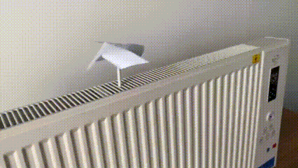 居里夫人第2代移动电壁挂炉的热气不仅是上层的出风口,四周同样也在释放热气,但小编仔仔细细观察了一遍机器全身也没有发现有风机,也没有任何风机转动的声音,通过测试发现把一个小风车放在机器上方,会慢慢的转动起来,因为他拥有“无风机空气对流”核心科技!可以实现房间的热空气对流起来,所以房间能够迅速暖起来,更像是给家中装了个移动地暖,暖得舒服、暖得均匀,就像春天的太阳洒在身上一样舒适。