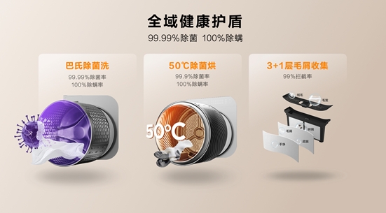 健康是消费者永恒的追求,而用户的需求就是企业的使命,TCL双子舱T10精心配置巴氏除菌洗、50℃高温除菌烘、3+1层毛屑收集等众多健康功能,达到99.9%除菌率、100%除螨率和99%拦截率,营造洁净空间,守护全家安全。