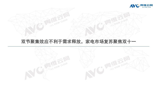 以线上渠道为主要促销阵地的“双11”,在越来越多的渠道分流、低价促销,以及越来越理性冷静的消费观念下,消费者对大促的热情不再高涨,已经连续十五个年头的“双11”似乎效率见顶。但考虑到空调市场在库存压力、退货风险以及结构上行承压均价下滑下,我们判断:“双11”促销期间零售额规模将迎来微幅下探。奥维云网预测数据显示,双十一空调市场零售额同比下滑2.3%,零售量同比增长0.2%。