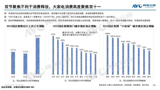 【消费意愿】考虑到中秋及国庆假期法定节假日市场达到8天,假日集中化背景下更利好出游型消费,本地型消费将受影响。国庆市场家电需求释放不充分,规模预计在低基数下小幅增长。而10月7日复工后,距离双十一预售节点(10月中下旬)只有1-2周时间,预计大家电消费需求将在双十一期间集中释放。