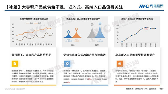 用户对冰箱存储空间的需求仍在,据奥维云网(AVC)监测数据,23年1-8月线上500L+大容积零售量占比超过26%,线下市场零售量占比达50%。今年开年企业对冰箱市场抱有超高预期,从实际零售数据看,恢复较为缓慢,对后市预期降低,对冰箱库存有所保留。各品牌对下半年市场预期过于悲观,造成目前供应链端紧张,尤其是大容积冰箱的供应存在行业性不足问题。