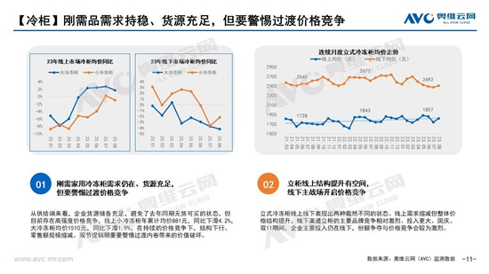 【整体判断】冷柜市场进入旺季,年货节营销周期前置于国庆、双十一期间,但囿于同期高基数影响,增长压力仍在。促销期间企业仍以刚需卧柜为主推产品,大容积产品趋势强化,立式柜有望进一步增长,下沉渠道重点发力。但从上半年促销节点来看,价格竞争过于激烈,未来促销期有可能会产生高强度的价格竞争。