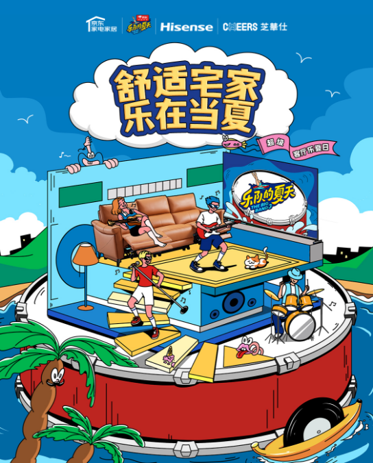 洞察到年轻消费者的兴趣体验新需求,海信和芝华仕通过借势京东家电家居独家冠名的《乐队的夏天3》热度,以“音乐现场”为核心展开布局共创“Live营销”,为用户打造新的宅家生活的live主场。