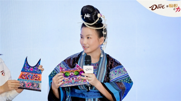 穿着贵州苗族服饰的杨双芝是德芙“她学院”第6期的优秀学员,此次专程来到上海,分享了她的“蜕变”故事,并带来了“她学院”同学们亲手制作的贵州蜡染作品,“我是一名来自普通的农村家庭的女性,也是我们苗族刺绣非遗传承人,在没有加入到德芙“她学院”之前,我没有想到我的刺绣将来会成为我的事业。”那双用于刺绣非遗的双手,曾迫于生计用来工地打工,在加入德芙“她学院”后,学习了管理民宿、蜡染、制作糕点等技能。