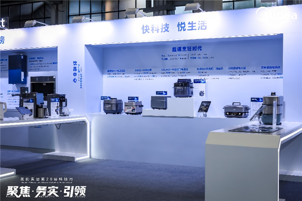 在超速烹饪展台,美的展出速嫩感电压力锅,颠覆传统烹饪效率,创新采用2200W IH大火力直接加热内胆,大大提高了热效率,可3S速热,3分钟快速起压,实现6分钟即可完成一道大菜。同时,美的研发团队优化了风道结构,使得锅内温度远远突破普通电压力锅140℃的上限,可达180℃,确保食材汤汁专为高压蒸汽而不流失。更搭载专利超速嫩香技术,食材实现360°立体快速受热,能够锁住食材内部的水分,让食材口感更加鲜嫩,浓香入味。据权威机构认证数据,菜式嫩度相对常规电压力锅提升110%,鲜味提升20.47%,鲜味提升35.53%。此外,它还拥有第四代磁悬浮变压技术,在有效防溢的同时,还能通过磁动力控制压力的加减,实现全程大沸腾,即便是动辄要炖上好几个小时的牛腩、猪蹄,用它都能快速炖到酥烂,汁香味浓。并且该压力锅,采用全自动排气设计,排气仅需30秒,助力美味快速上桌,安全又省心。美的超速嫩香电压力锅,在诸多创新黑科技加持下,一经上市便成为行业热销TOP1,刷新用户烹饪体验的同时,创领行业发展新趋势。