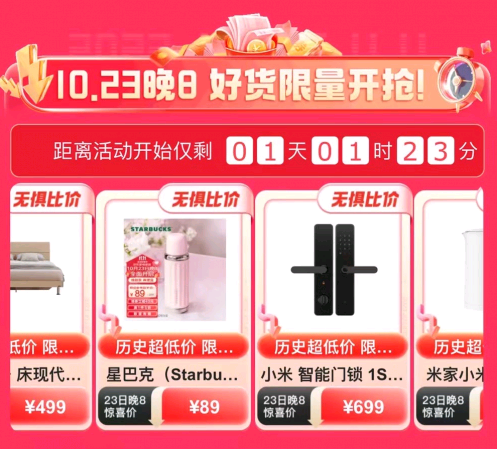 为了让用户省心省钱焕新家,京东携手主流家电家居品牌,带来百万好物9折优惠的低价福利,以最具诚意的价格、最有吸引力的商品,以及最贴心的服务,用实打实的真低价,为消费者带来真便宜、闭眼买的消费体验。京东家电家居甄选超低价好物,23日晚8点限量开抢,不到1000块的九牧全自动多功能智能马桶、直降1400元的戴森吹风机、优惠600元的西门子10公斤滚筒洗衣机、不到1600元的小米1.5匹冷暖变频空调、低于1000元的小米智能门锁,以及价格降至两位数的LOVO大豆被、星巴克樱花粉复古保温杯、小米电热水壶等,都是历史超低价,无惧比价。