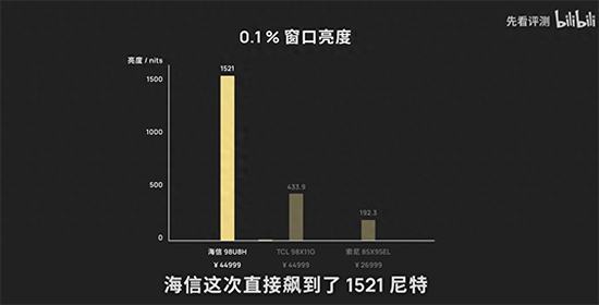 很多消费者选择MiniLED电视,是因为它拥有高亮度,看电影的时候细节更清晰,而电视的背光分区是实现画面亮度的关键。但是当分区数量来到5000以上,大屏上的相对显示面积已经不足千分之一,如此小的显示窗口还能否保证高亮度呢?