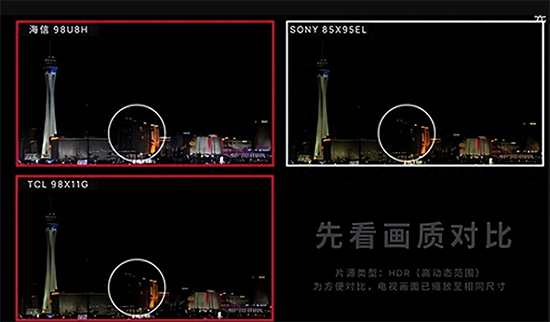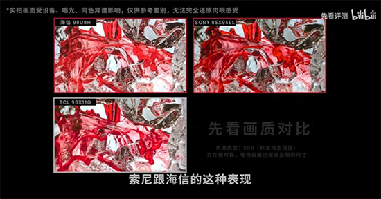 不过就在最近,本人关注的B站知名数码博主“先看测评”发布了一则视频,视频选取了市面上三款主流旗舰机海信电视U8H、TCL X11G、SONY X955L进行了一次全方位的画质对比测评。
