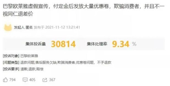 本来只是一句普通的回答,立刻引起主播粉丝们的不满,在黑猫投诉平台进行投诉,机体投诉量达到了30814次。李佳琦和薇娅均向欧莱雅方面发出“威胁”。最终,欧莱雅发布解决方案:为双十一预售期购买了安瓶面膜且产品订单累计达999元的消费者,提供200元的无门槛优惠券;未满999元的,则提供499元减100元的优惠券,两个券的使用期限均截至2022年6月20日。 而在2022年的双11,资生堂官方旗舰店悦薇水乳套装价格在11月4日凌晨突然降至888元,比此前暗示是“最低价”的李佳琦直播间同款价格硬是便宜300多元。资生堂方面称是系统设置错误,已经蒙受了巨大损失。最终,资生堂全额退款了888元购买的用户,并且该套餐将会发货,换言之,李佳琦直播间外的用户收到了资生堂赠送的李佳琦直播间同款。