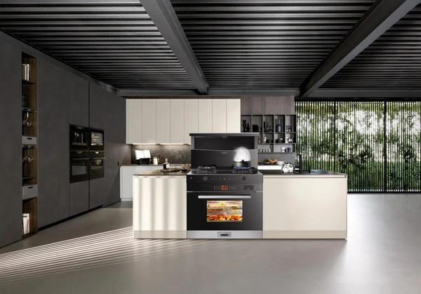 美多语音集成灶在空间利用方面形成了绝对优势,一机拥有烟机、灶具、蒸箱、烤箱,大大节省了台面、吊柜的空间并增加了收纳。打通视觉空间的同时,更打破了家人共同烹饪的限制,实现烹饪社交新模式。